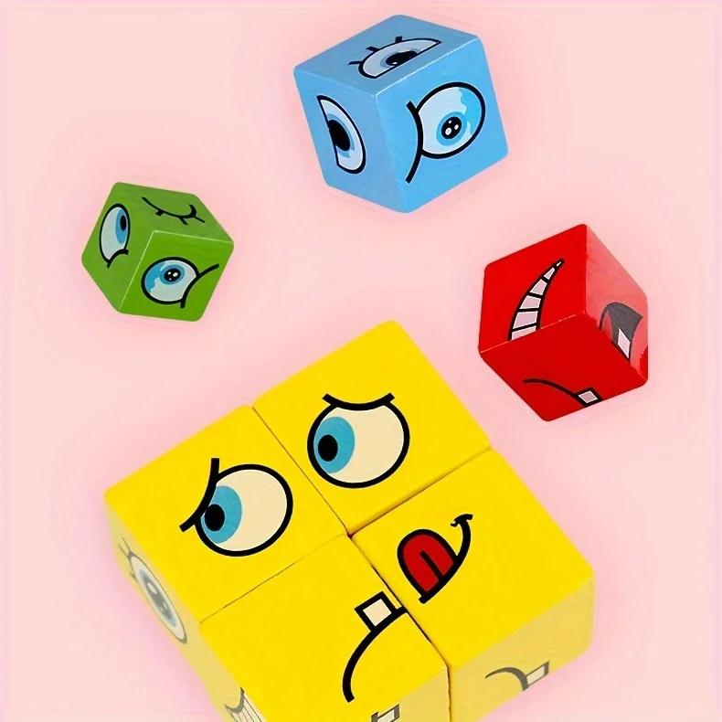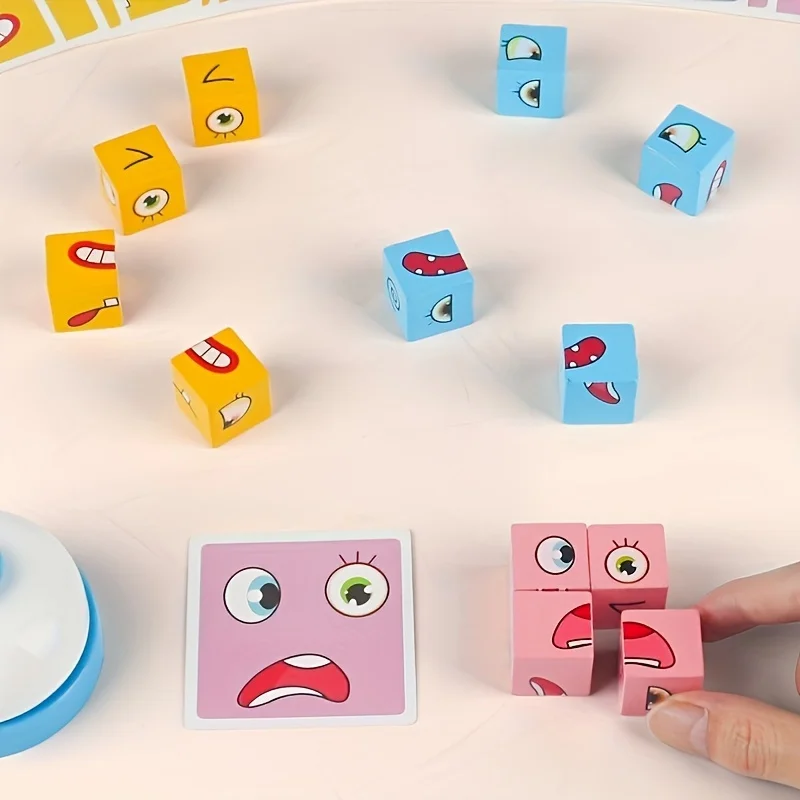 1 Set Montessori, Emotional Expression Block Toys, Exercise Concentration, Wooden Parent-Child Interactive Educational Toys