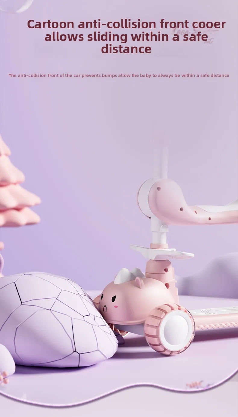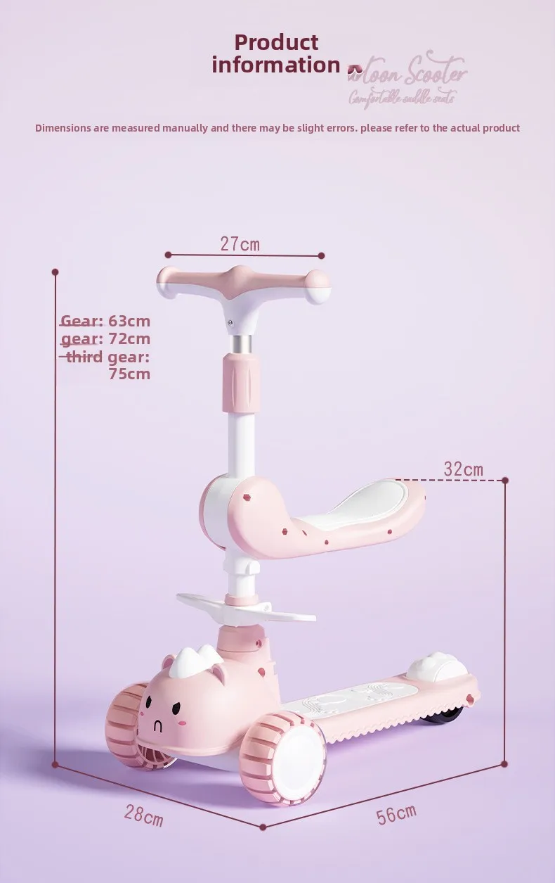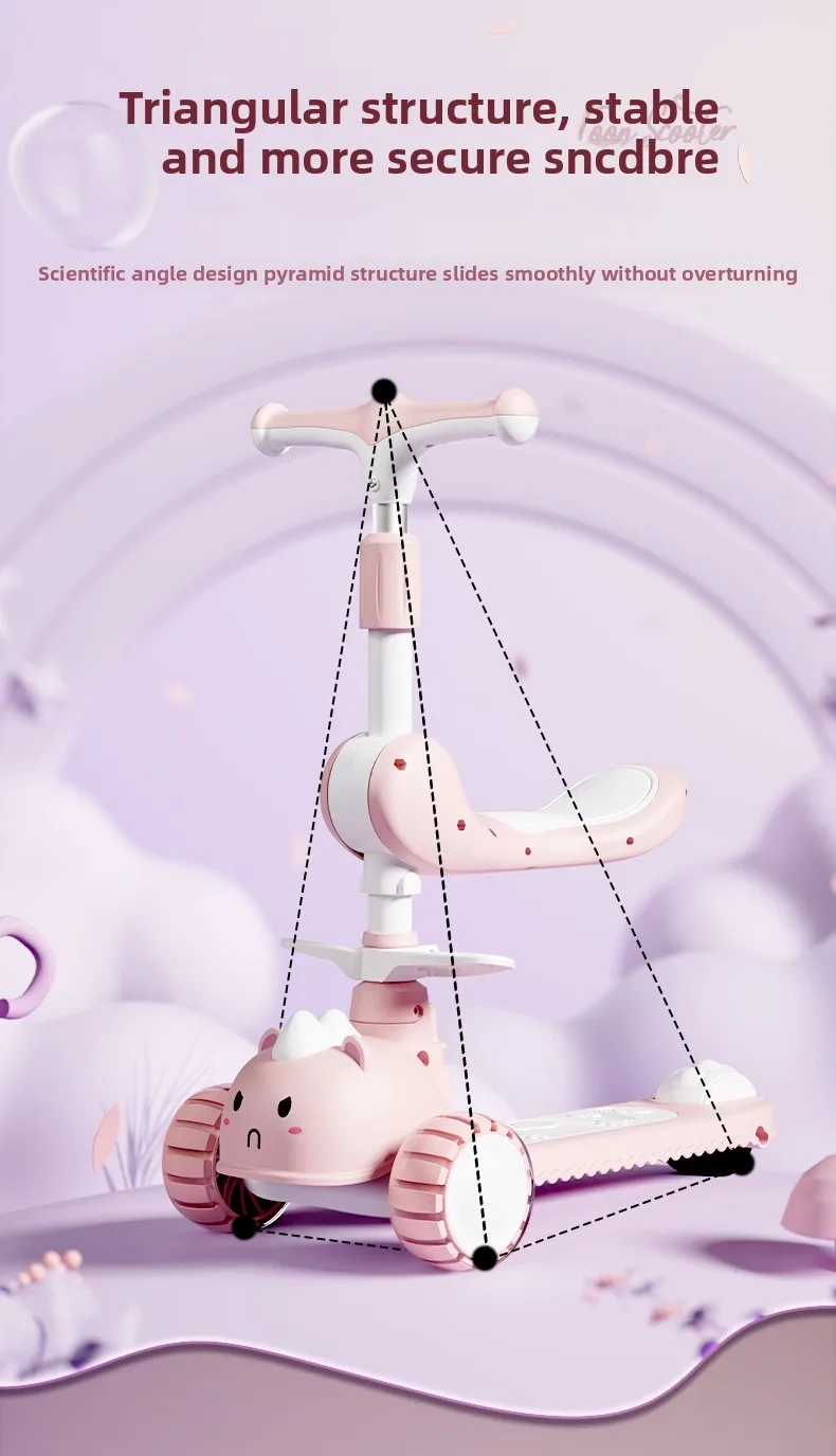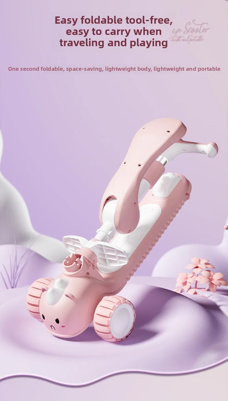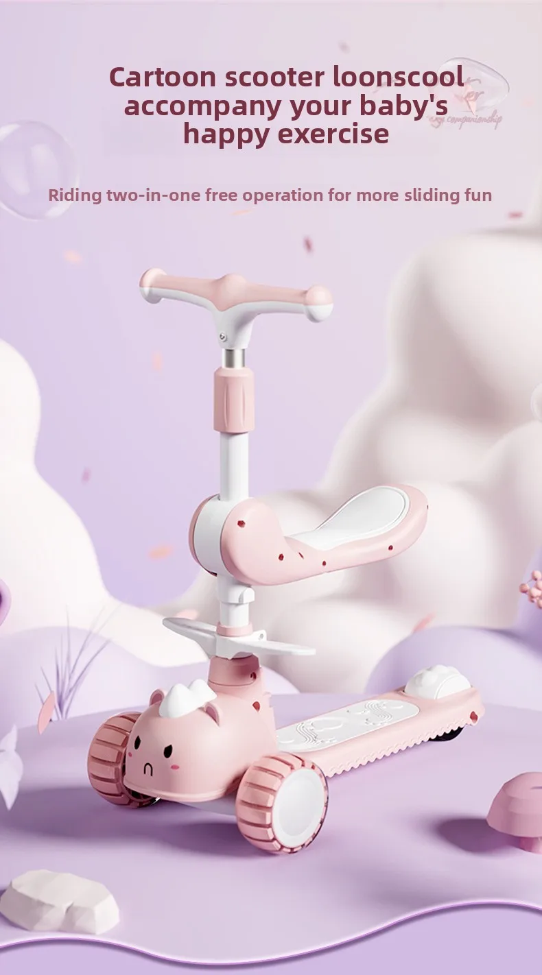 2-In-1 Children's Scooter Baby Kickboard 3 Height Adjustable 3-Wheel Music Light Foldable Micro Kcik Scooter Boy Girl Ages 2-10
