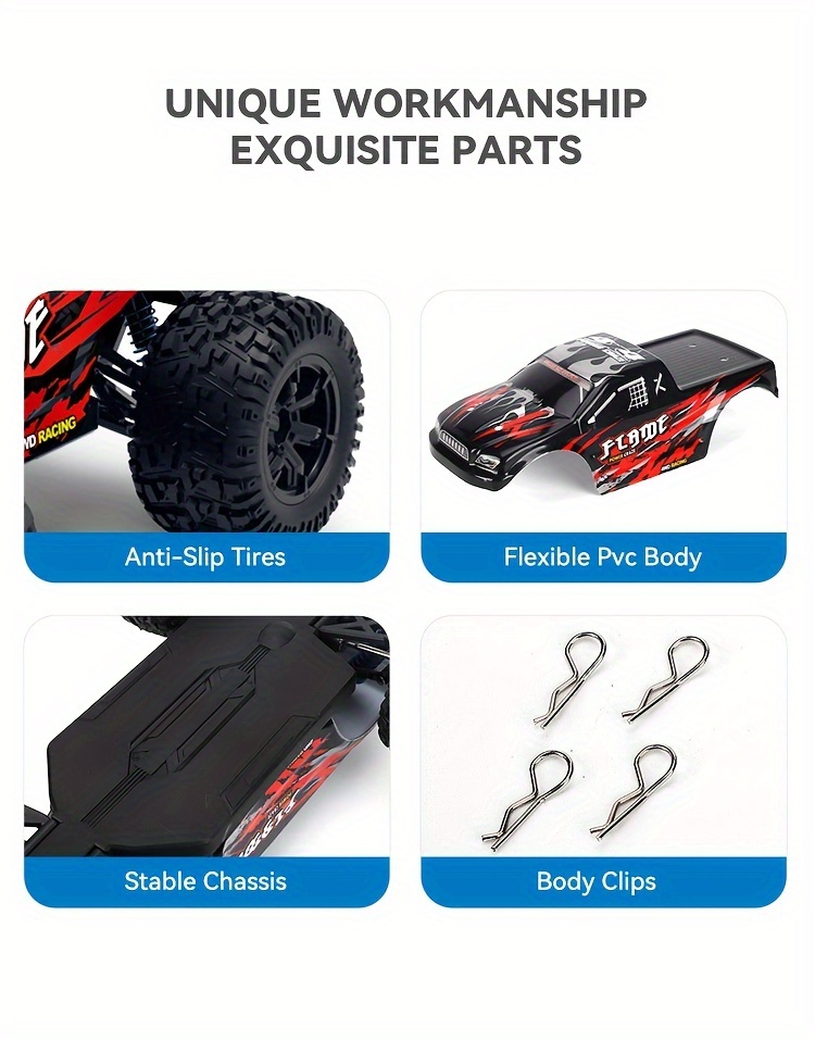 Fast RC Cars, 1:16 40KM/H High Speed Remote Control Car, 4X4 All Terrains RC Monster Truck, 2.4GHZ Off-Road Hobby Electric Vehicle Car Gift For Xmas, Rechargeable Battery With USB, Carbon Brush Motor